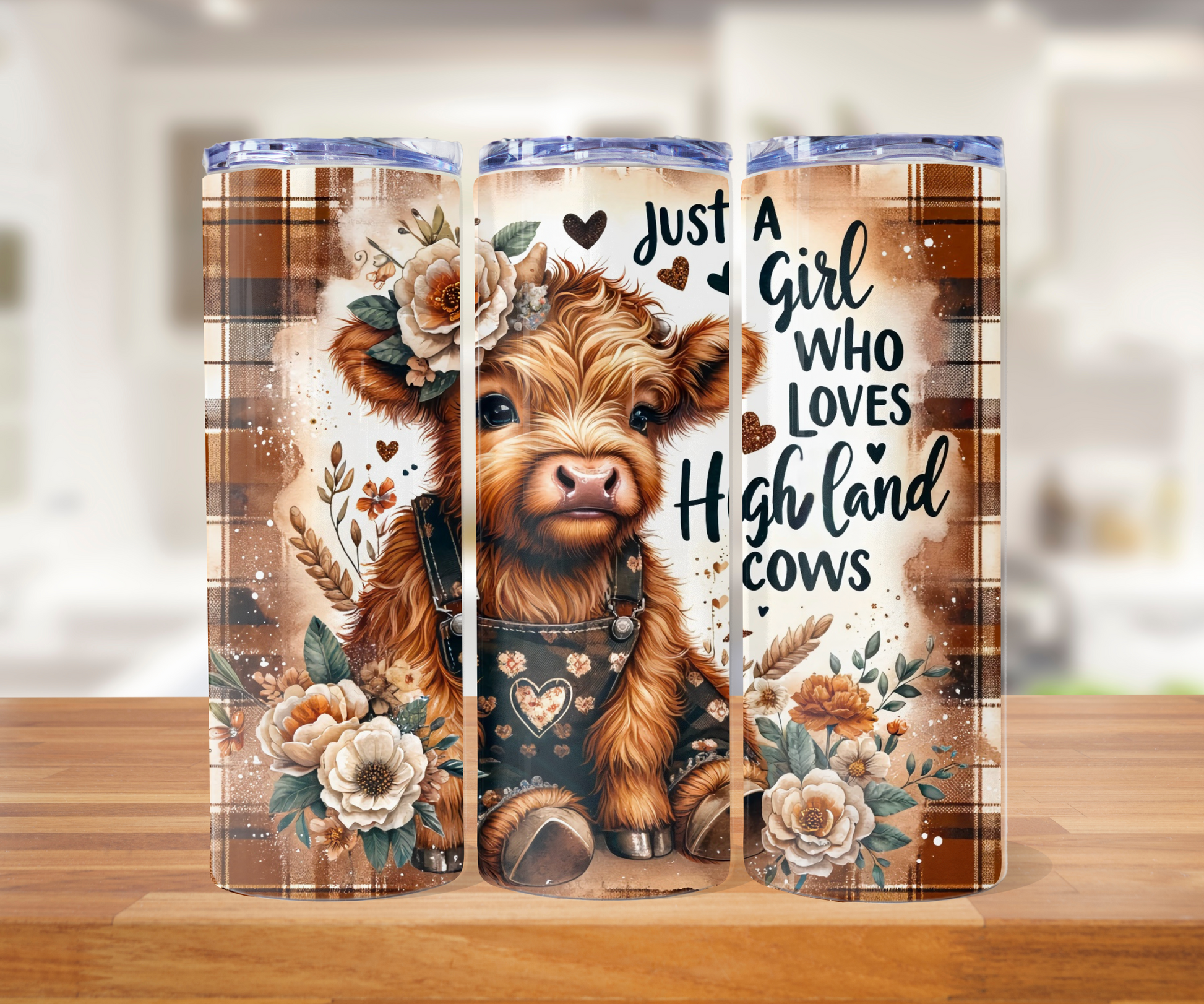 This 20 ounce stainless steel Tumblr showcases a unique and delightful "just a girl who loves Highland cows" design. Keep your drinks at the perfect temperature while expressing your love for these majestic creatures. Perfect for any Highland cow enthusiast or as a gift for someone special.