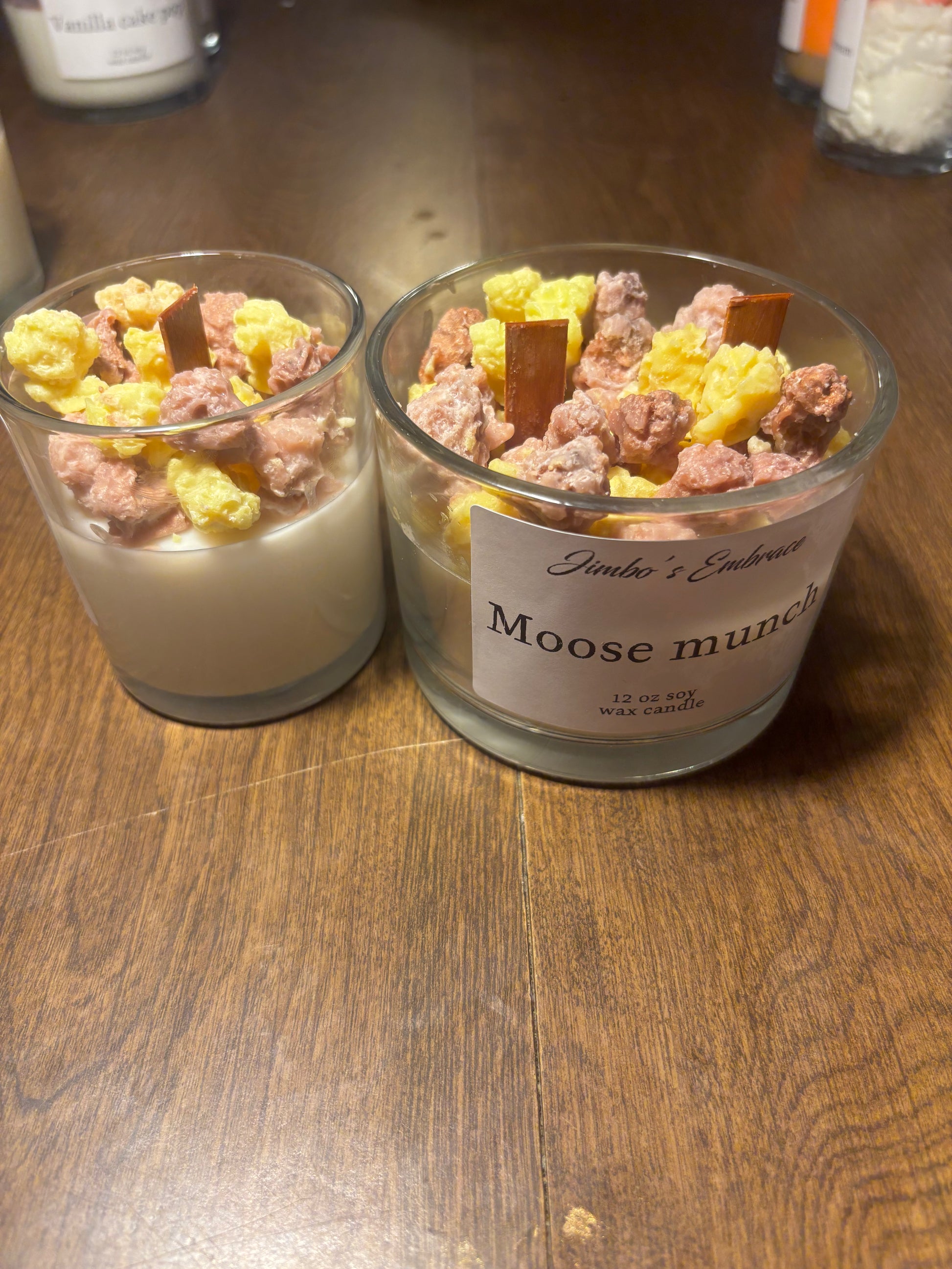 Indulge in the delicious scent of handcrafted Moose munch candles. Made with care and expertise, these candles will fill your home with the comforting aroma of rich moose munch. Enjoy the benefits of a beautifully fragrant home with these charming candles.