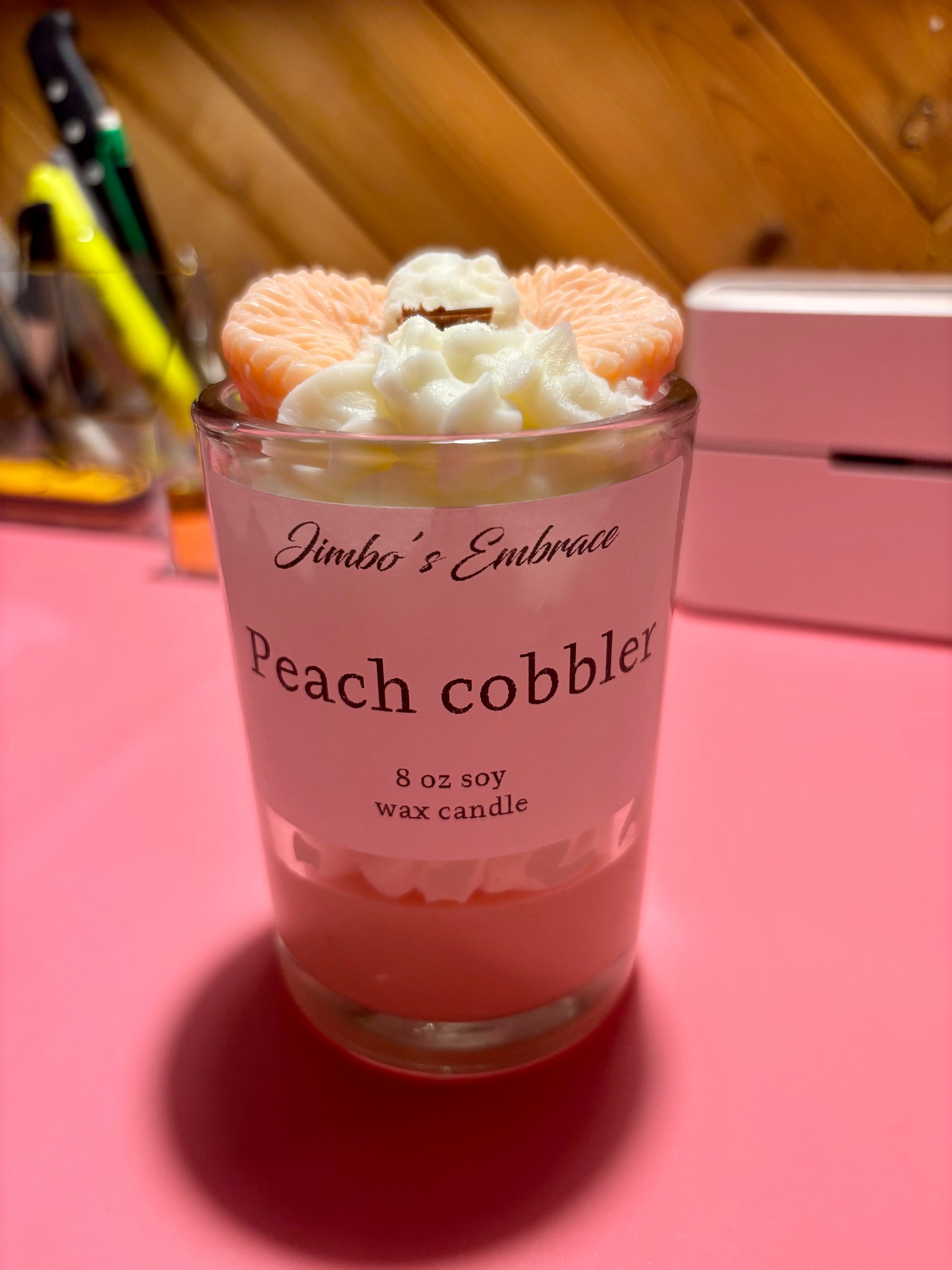 Experience the warm and inviting aroma of summer with our Peach Cobbler scented candle. Made with high-quality ingredients, this candle will fill your home with the delicious scent of juicy peaches and warm, buttery crust. Bring the essence of a freshly baked dessert into any room for a cozy and comforting atmosphere.